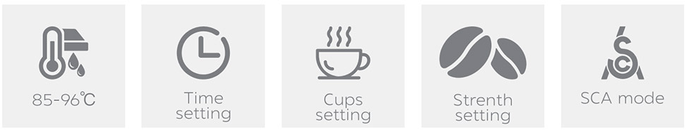 3.Set Your Preferences: Press the “cup size” button to select 2/4/6/8/10 cups, then choose your strength (SCA/strong/mild/ice coffee).