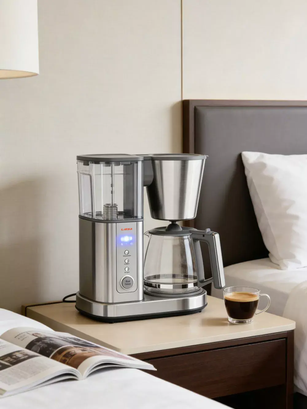 Supplied by Liesa, a professional Kitchen Machines supplier in China, this Drip Coffee Maker stands out for its user-centric features: a 24h delay brew, adjustable cup sizes, and multiple strength settings (including SCA, strong, mild, and iced coffee). The Drip Coffee Maker’s NTC-regulated temperature (85-96°C) and even-showering design lock in coffee aroma, while the activated carbon reservoir ensures clean, great-tasting brews every time.