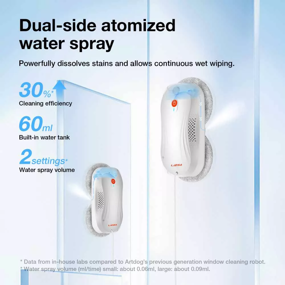 As a supplier deeply rooted in the cleaning equipment industry, Liesa understands the importance of product stability. The core advantage of this best-selling Electric Glass Wiper Window Robot Cleaner lies in its "double-sided cross-twisting wiping" technology. It doesn't simply rub in circles on the glass; instead, it applies alternating pressure like a human hand, combined with dual-sided atomized water spray, first dissolving the stains and then thoroughly wiping them away.