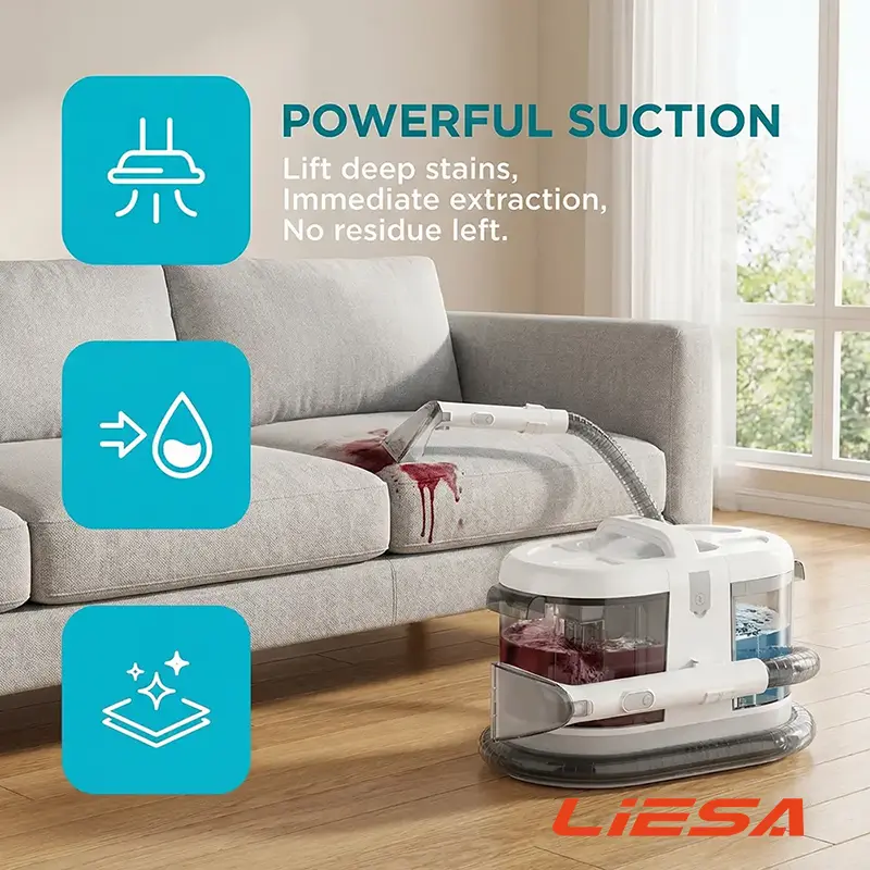 Still fretting about fabric disassembly hassles, chemical residues and mite infestation? Liesa, a professional maufacturer in China focuses on small household appliances and sells well in Europe and America. It launches innovative High Temperature Steam Fabric Cleaning Machine for traditional fabric cleaning pain points. It combines high-temperature steam dissolution, spray and suction with multi-scene adaptation to reconstruct the fabric cleaning experience. Whether it is a pet family, a family with children, or you who pursue quality life, you can easily achieve efficient cleaning of "no cleaning, direct washing, and complete elimination of bacteria and mites".